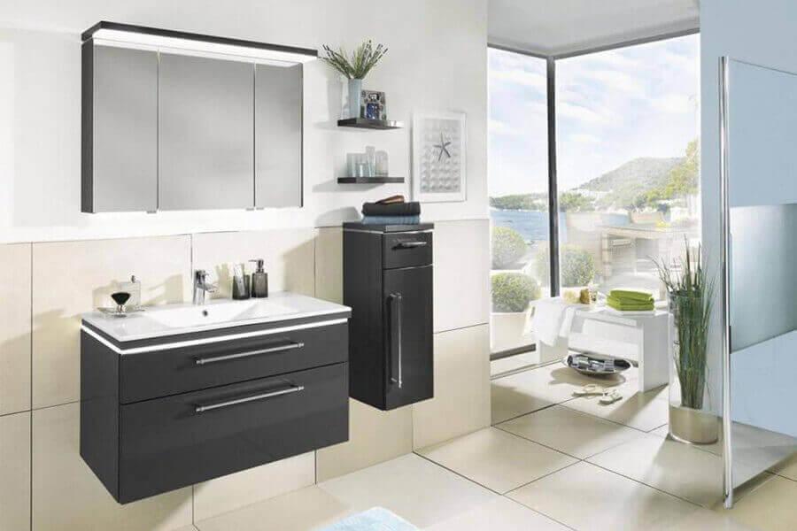 Es gibt ihn in zahlreichen Maßen, mit ein, zwei oder drei Türen. Das Besondere: Neben der klassischen, symmetrischen Aufteilung der Türen, gibt es die asymmetrische Variante. Phönix ist mit unterschiedlich großen Spiegeltüren erhältlich, so dass beim täglichen Stand vor dem Waschtisch die Spiegelfläche nicht mittig, sondern versetzt geteilt ist. Das Spiegelbild ist damit perfekt und der Nutzer kann gleichzeitig noch eine Tür öffnen.